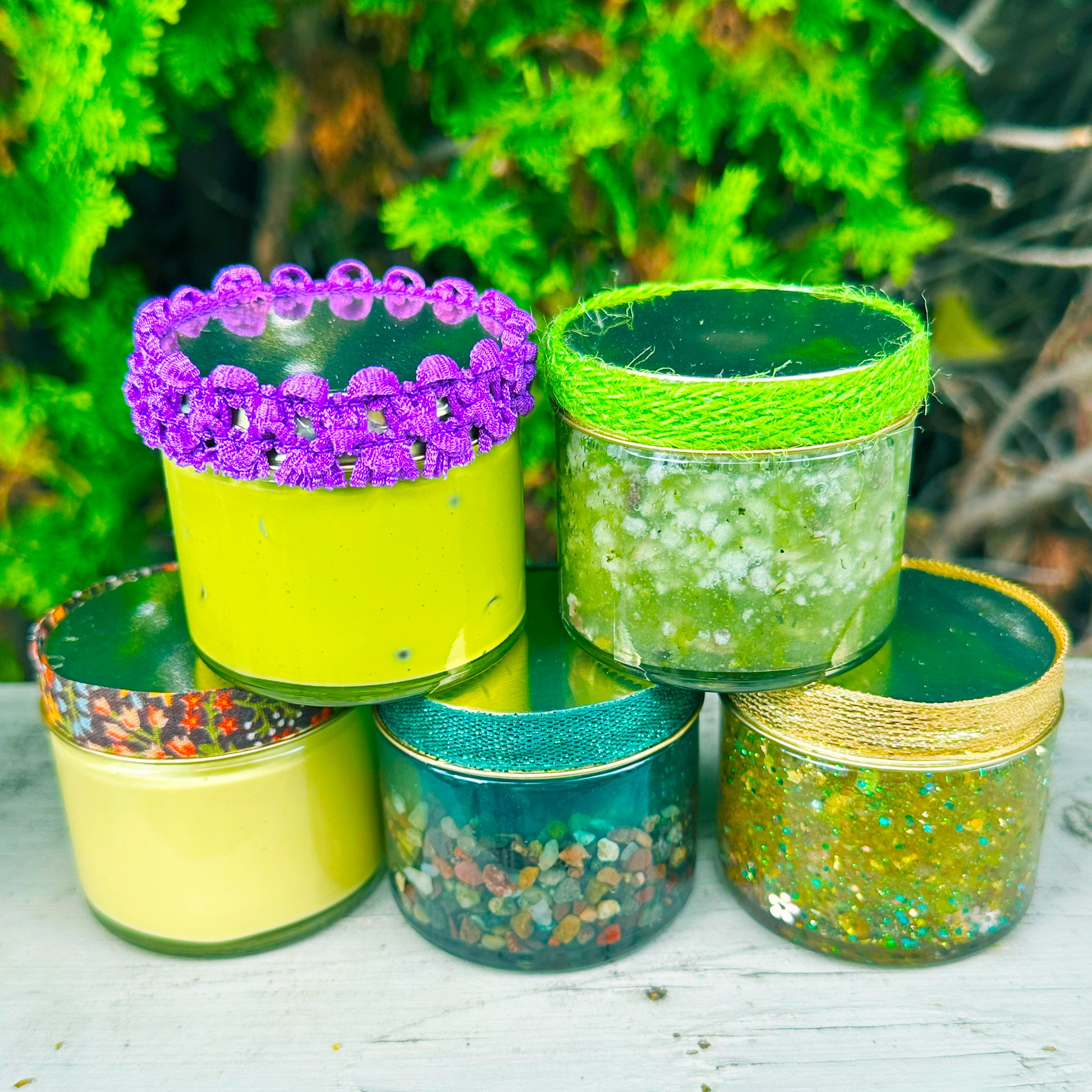 May also contain: Glycerin, mica, watercolor ink, acrylic paint, beads, glitter, air dry clay