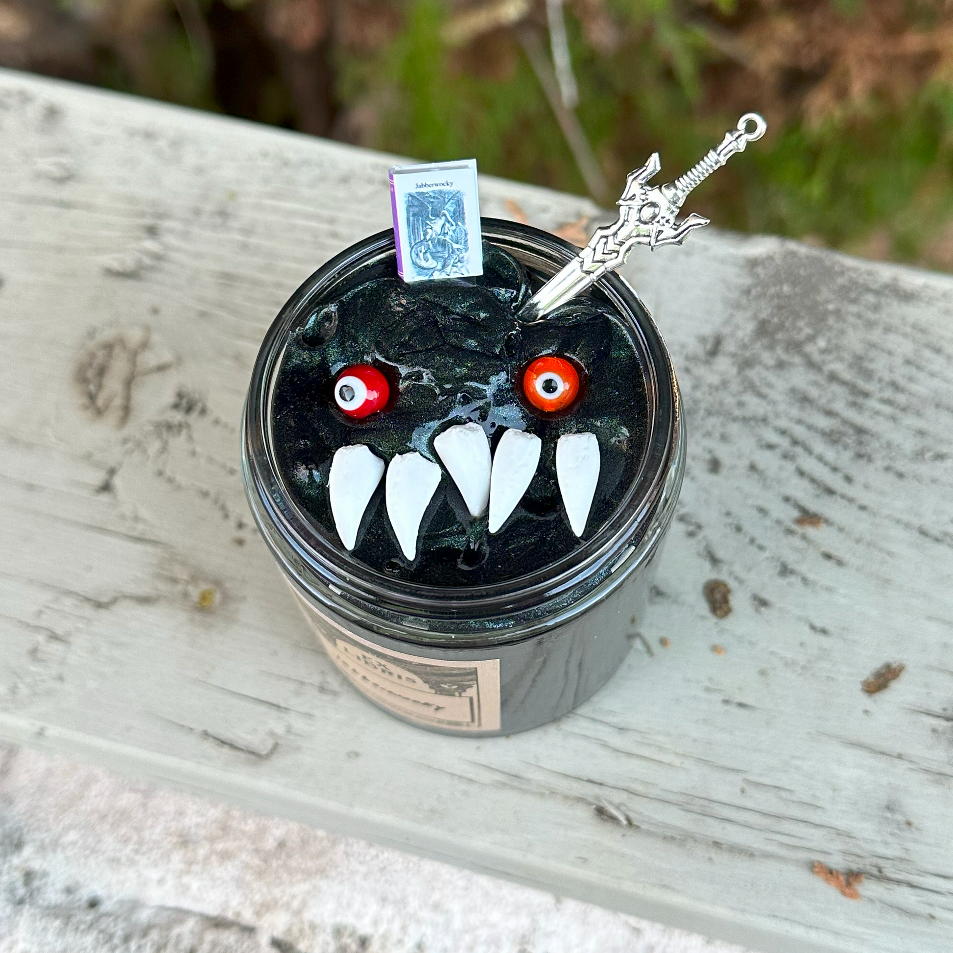 This thick putty-like clear shifts from gold to green to blue to purple, and has just a little gravel for texture. Comes with eyes of flame, jaws that bite and claws that catch, and your own vorpal blade (random fantasy design).