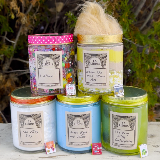 Bundle of all five slimes included in the Pictures of Childhood drop. All slimes come with their book charms and unique add ins.