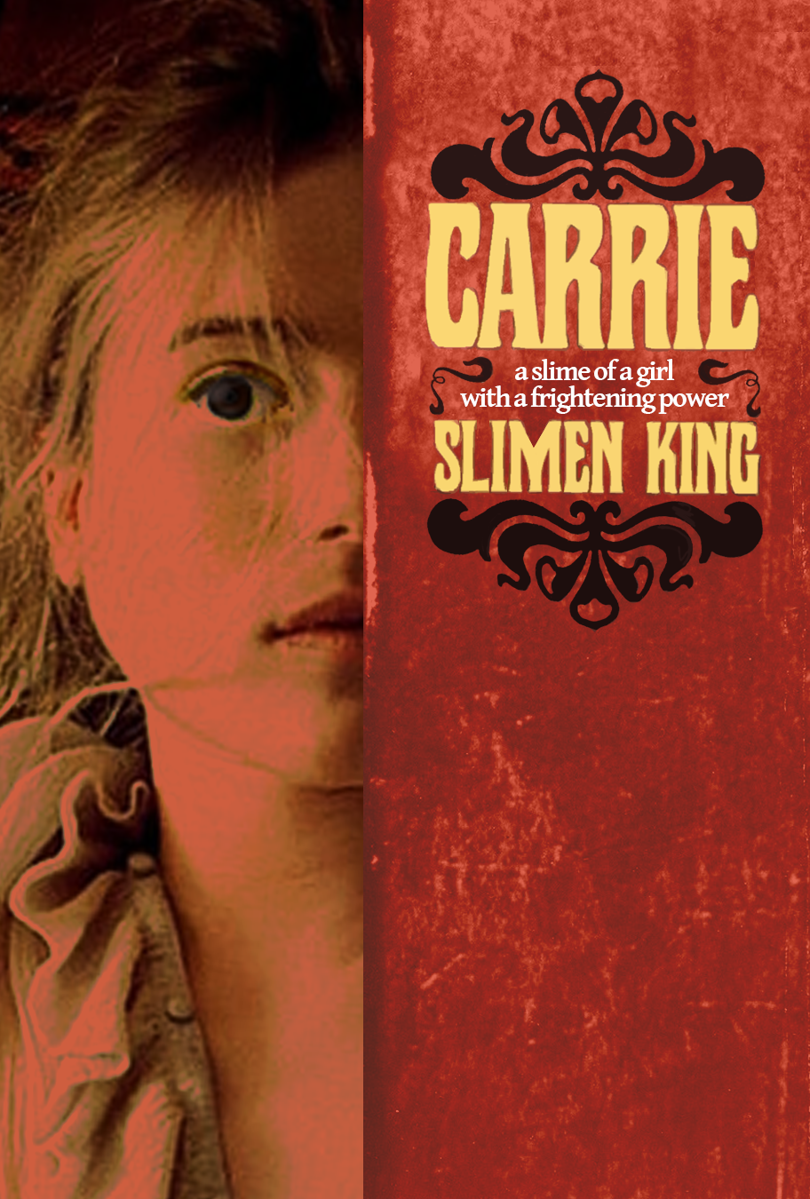 I loved the design of the original book cover, but found the woman to look too adult for how I imagined Carrie - I redesigned it with a younger looking woman, who also has the paler hair Carrie has. I did try to replicate the expression from the original as best as I could, with her wide, dark eyes.