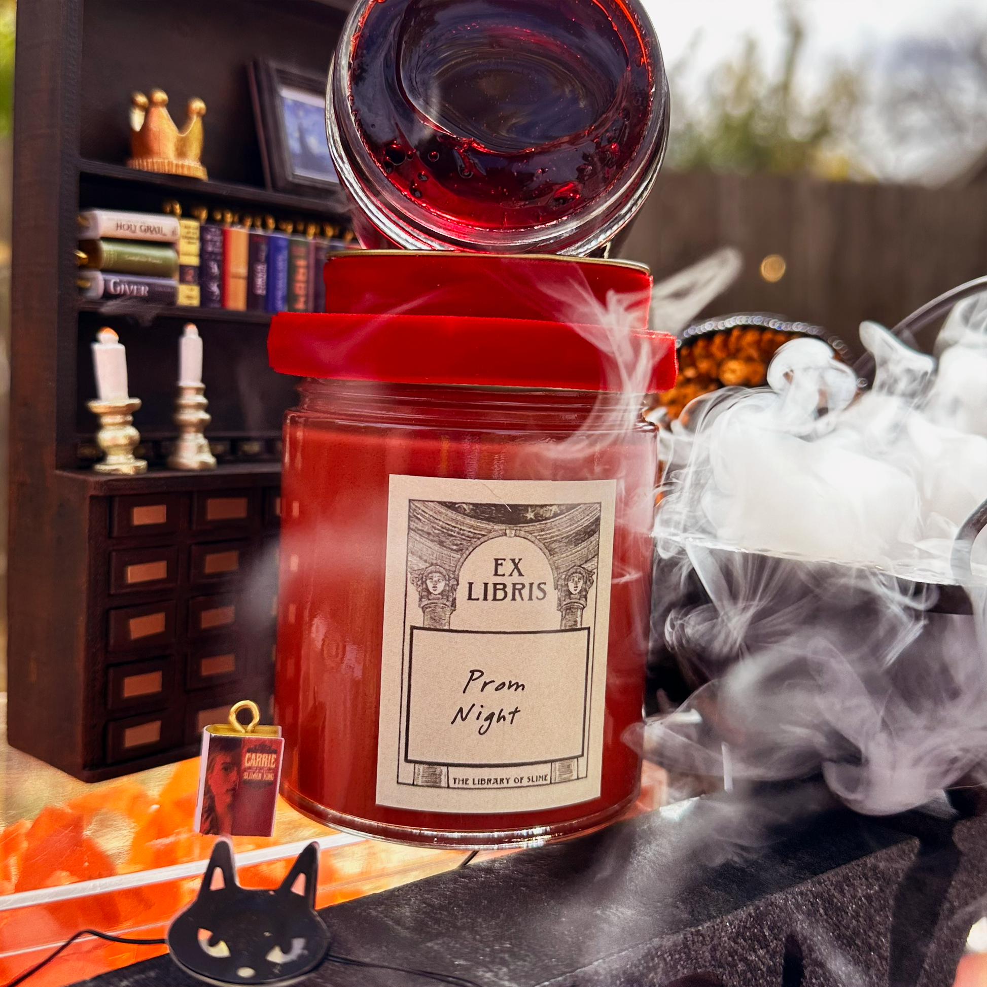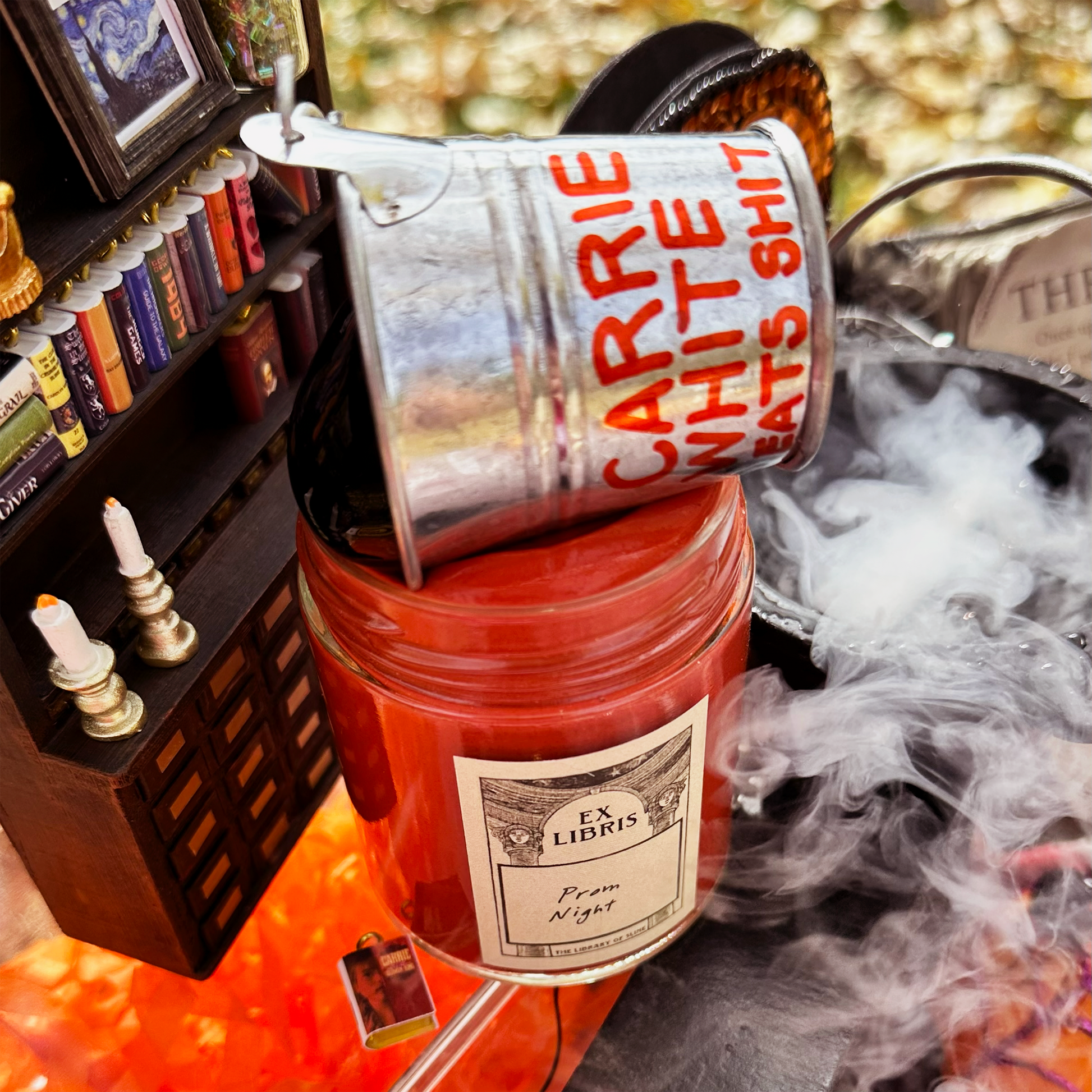 Carrie is bullied relentlessly by her peers, and this culminates in her being crowned prom queen, only so she can be set up to have pig blood dumped on her in a final act of humiliation. The story has a theme of sin and blood, and it is this final dreadful act that pushes Carrie over the edge. The bucket included with this slime has "CARRIE WHITE EATS SHIT" on it, a quote that appears throughout the book. The title for this slime comes from the chapter name when the prank and subsequent horror occurs.