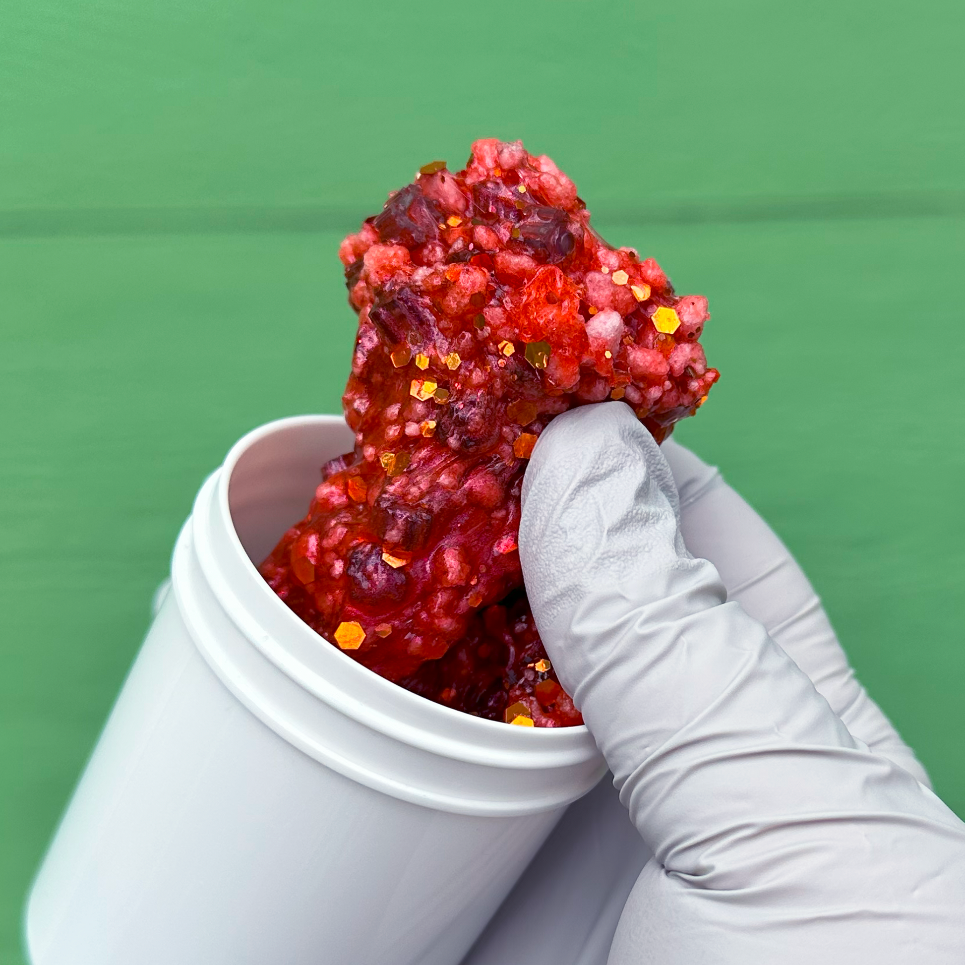 May also contain: Glycerin, mica, watercolor ink, acrylic paint, beads, glitter, air dry clay