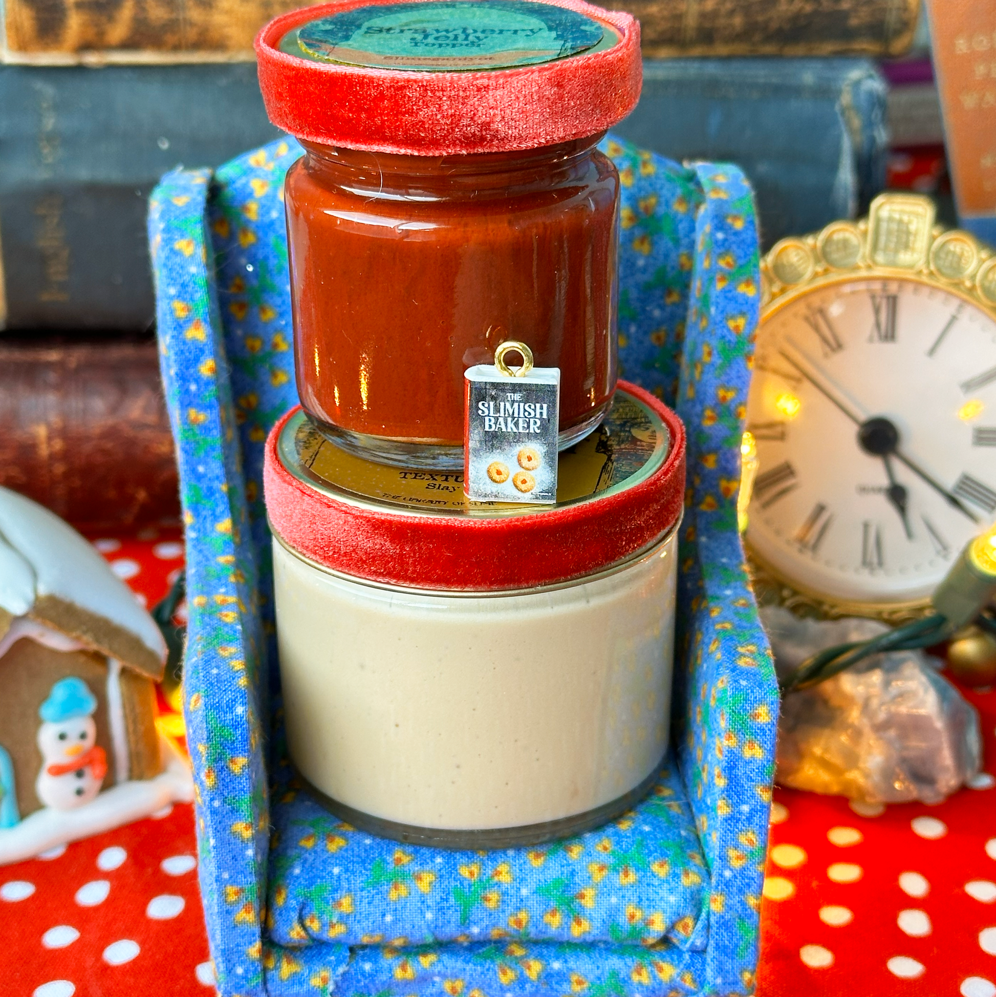 Both versions come with packet of corn starch for dusting the "powdered sugar" on top, and The Slimish Baker o book charm