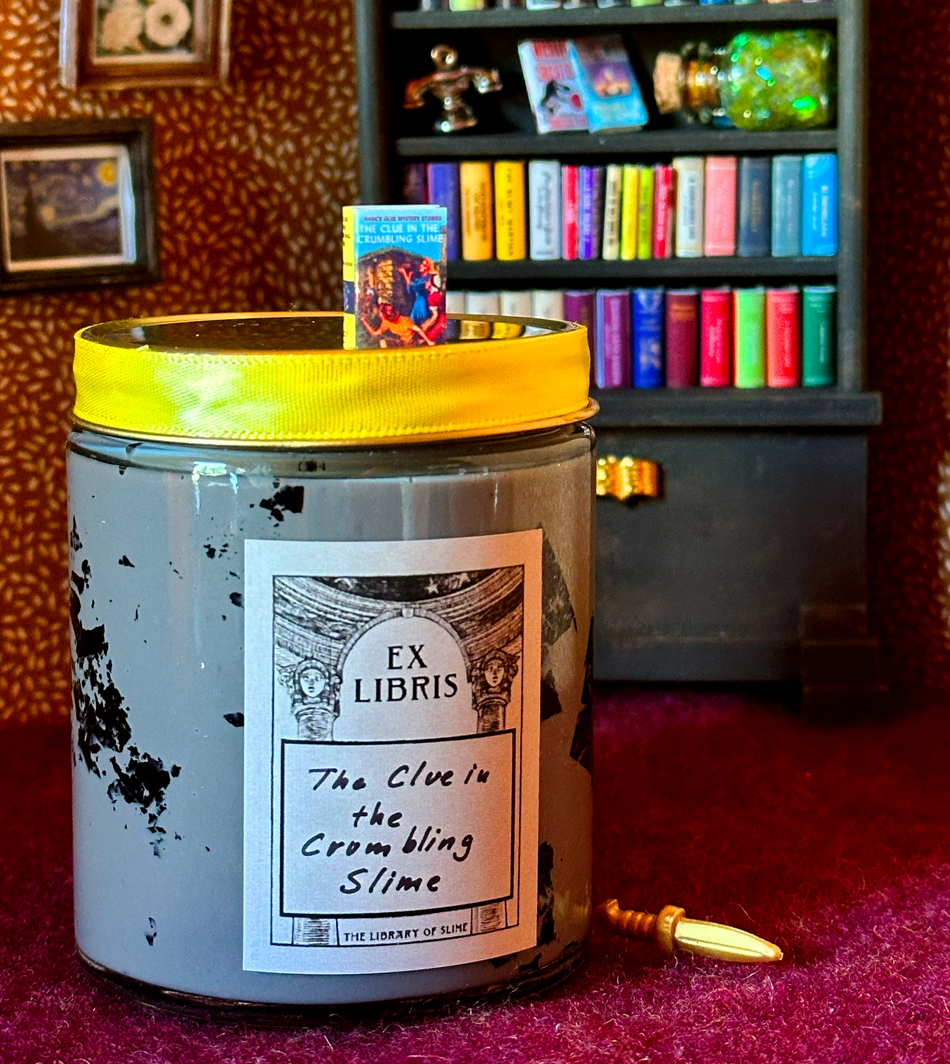 A little girl in River Heights is going around stealing flower bushes from unsuspecting neighbors. The Drew's rose bushes disappear from their front lawn, hence the focus on rose in the scent blend. Rose oil is delicate, so the overall scent is light, but comes out more once the slime warms up with play.