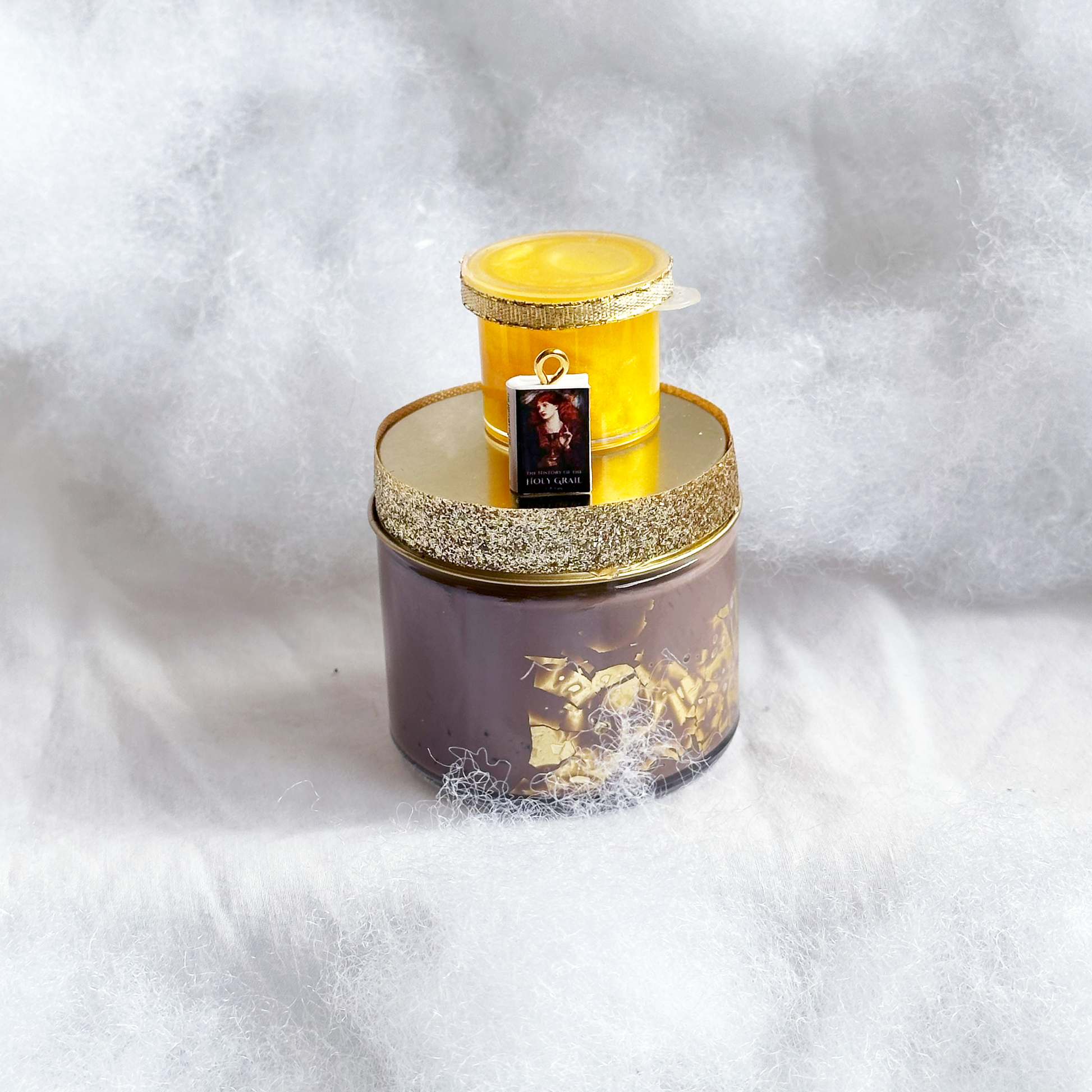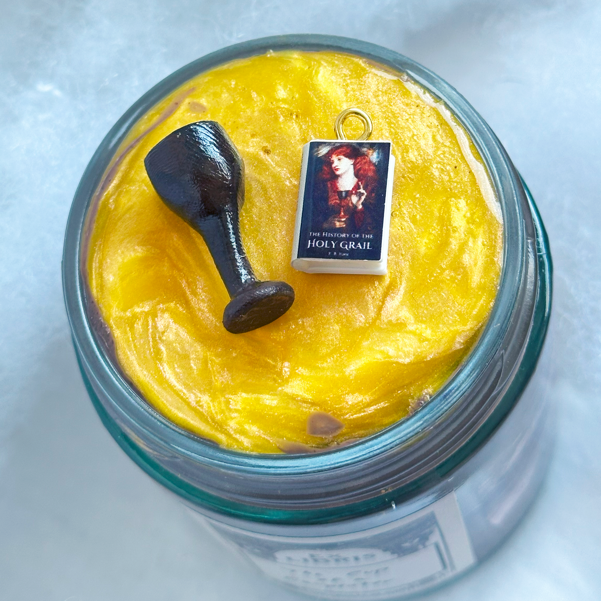 6oz version comes with clear gold topper, hand sculpted grail charm, and The History of the Holy Grail book charm.