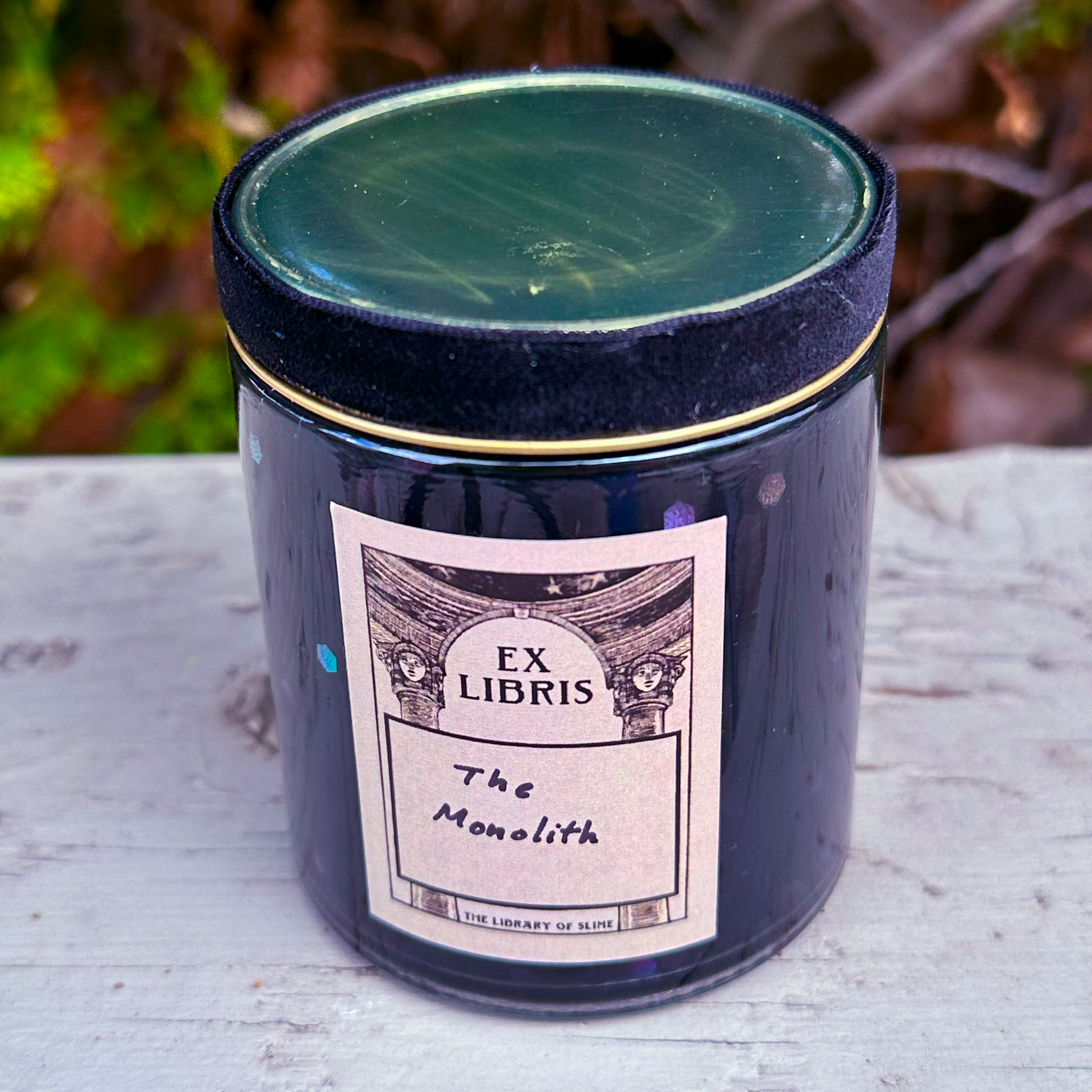 This coated clear slime represents the monolith in its various book descriptions as both almost completely transparent and as pitch black. It is packed with black glitters that flash with wild colors, reminiscent of the climax of the movie version of the book, when Dave is transported through time and space in wild swirl of color and light.