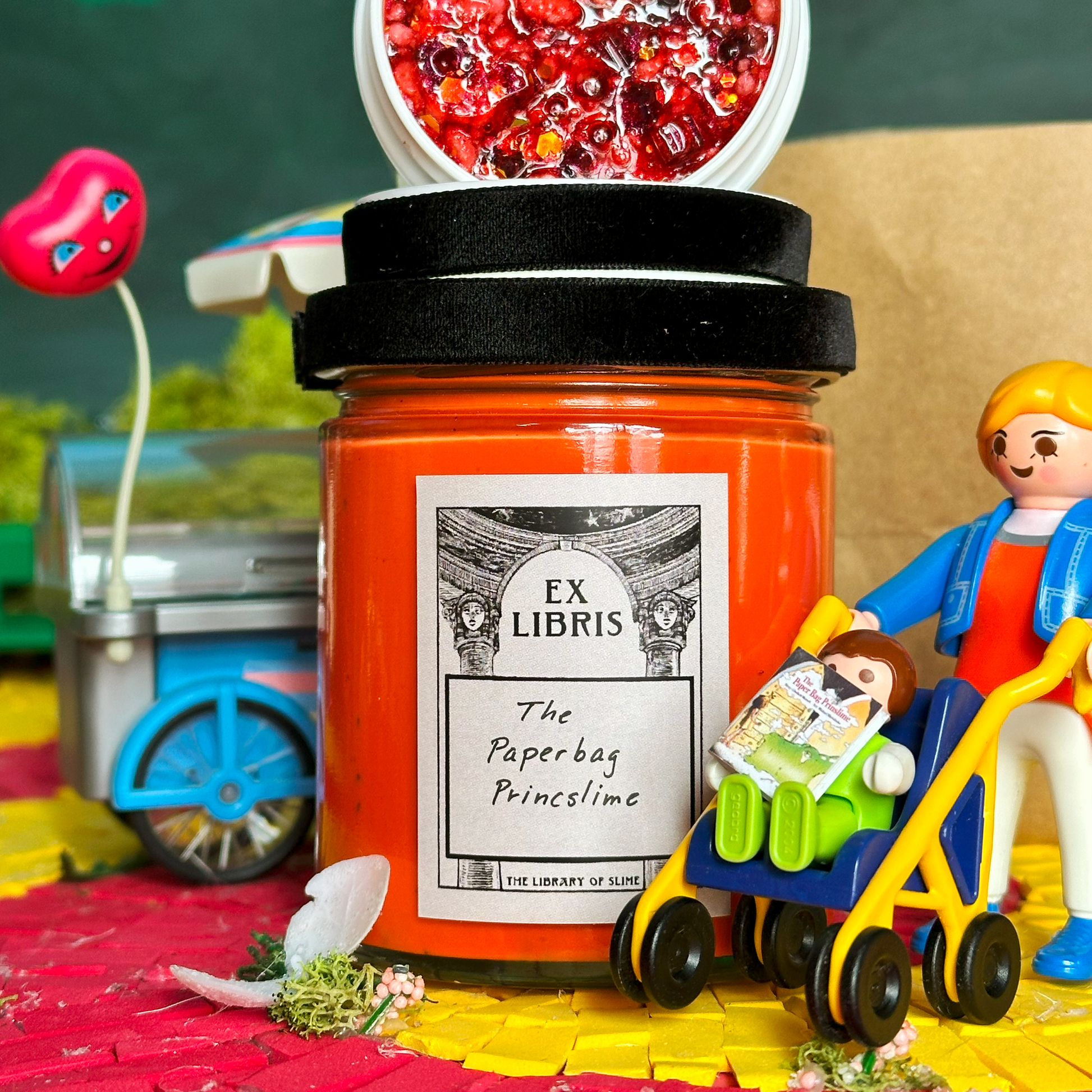 6oz version comes crown charm, fire fimos, and The Paperbag Slimecess book charm.