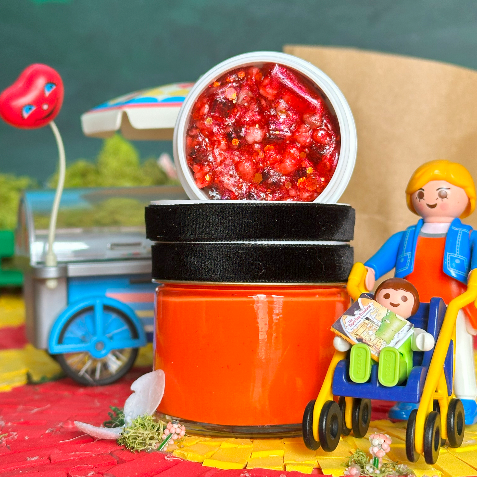 Slimes include essential and artificial oils and occasionally spices. Do not purchase if you have an allergy to any of the listed ingredients.