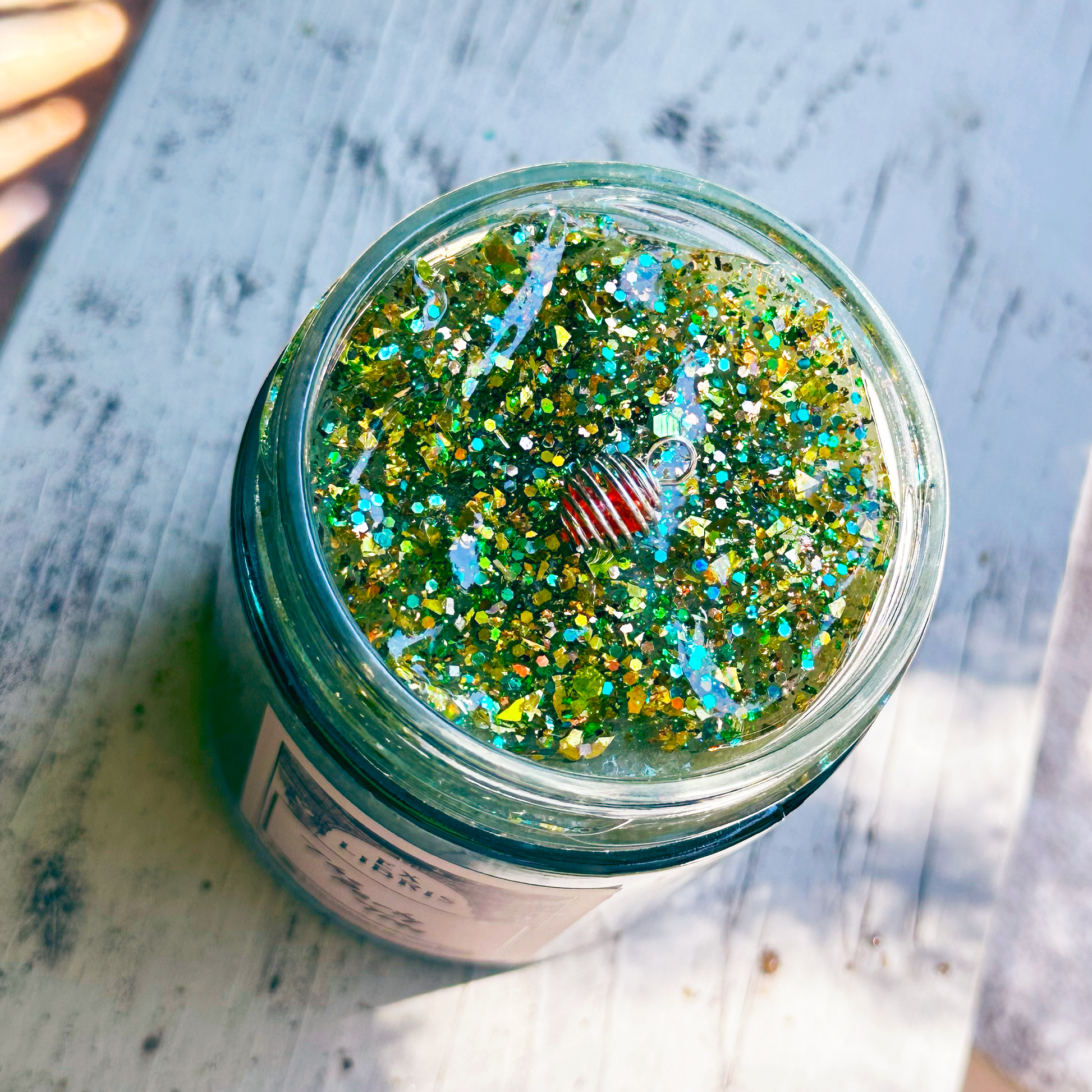 6oz - Two layers of snowfizz with glitter topper lantern charm, and The Party Tree book charm