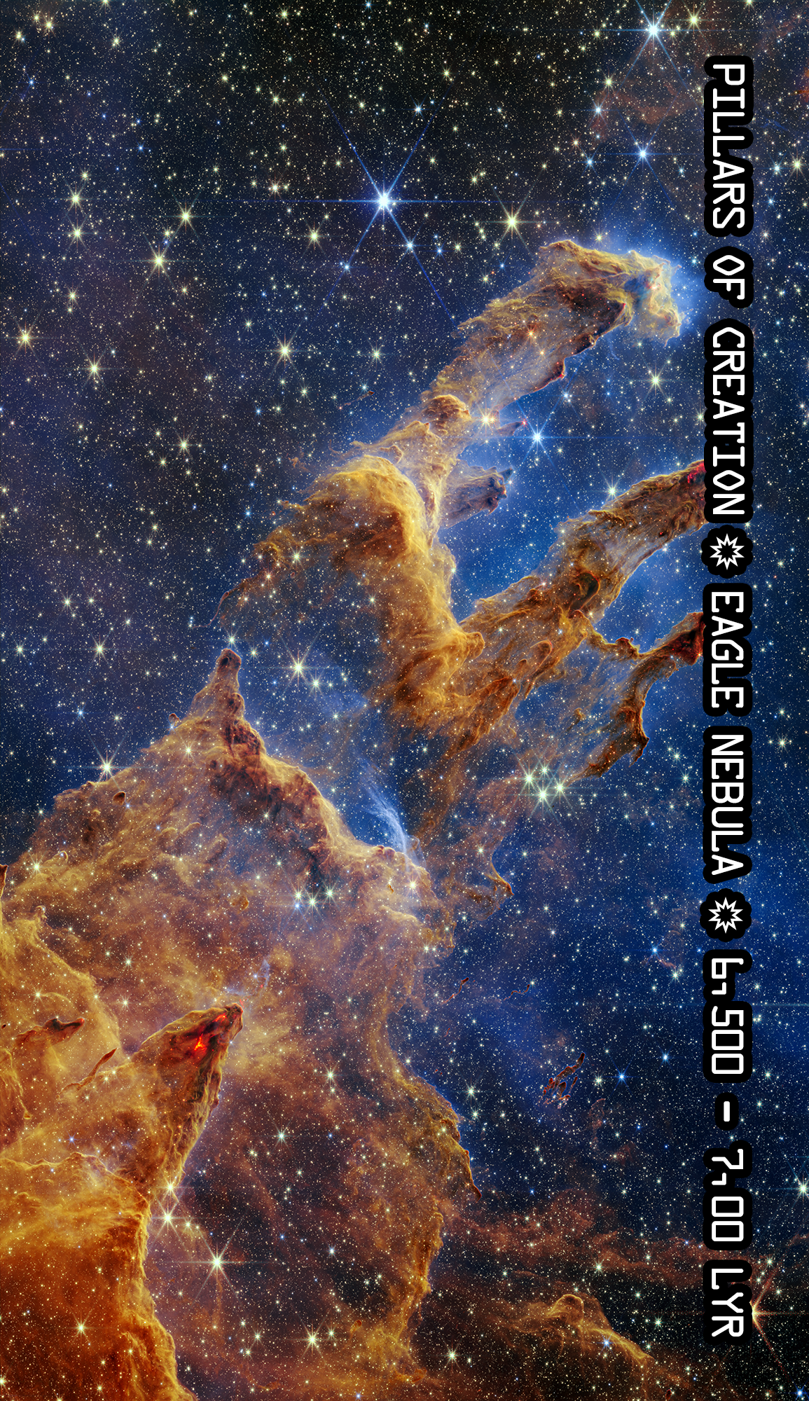 This poster is the most recent image of The Pillars of Creation we have, taken by the James Webb Telescope in 2022. I also included some details about it on the side.