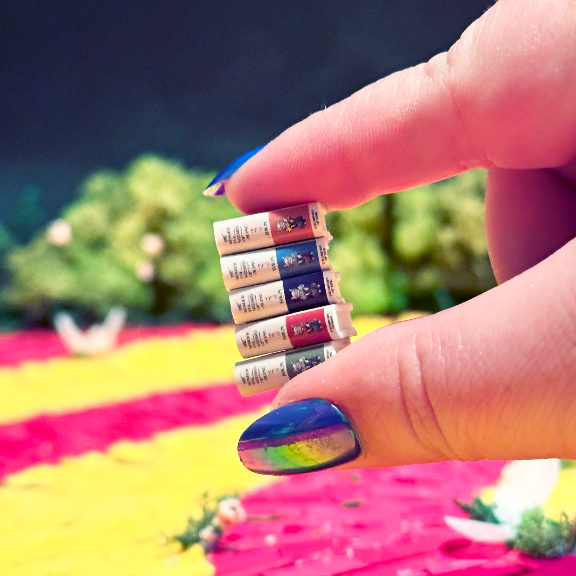 The Wonderful Wizard of Slimes book charm collection includes The Emerald City, The Deadly Poppy Field, The Lollipop Guild, The Winged Monkeys, and I'm Melting!