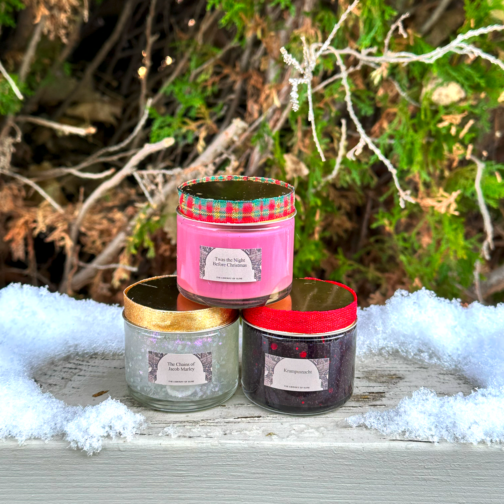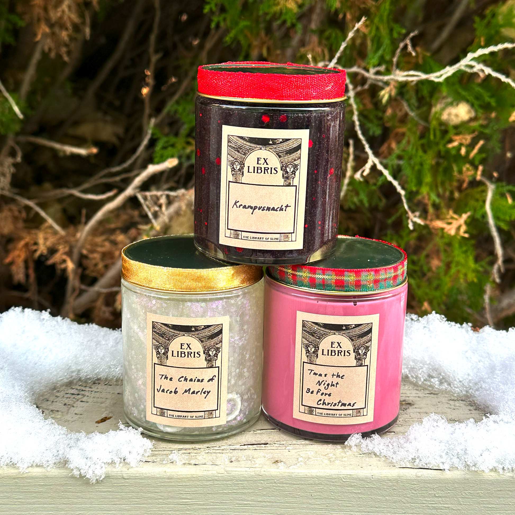 Contains three Christmas slimes: 'Twas the Night Before Christmas, The Chains of Jacob Marley, and Krampusnacht.