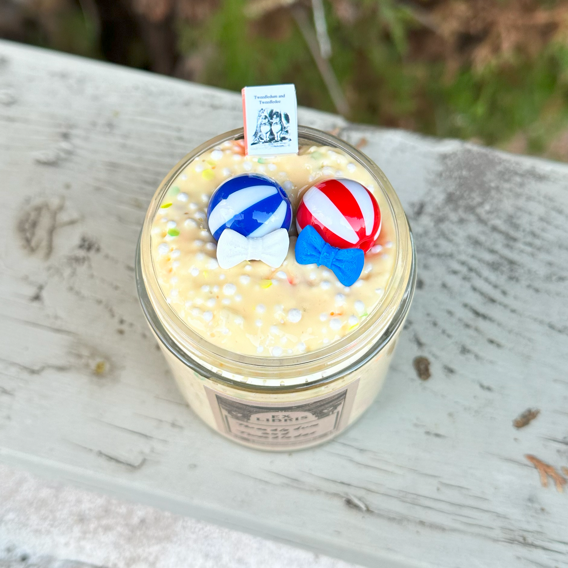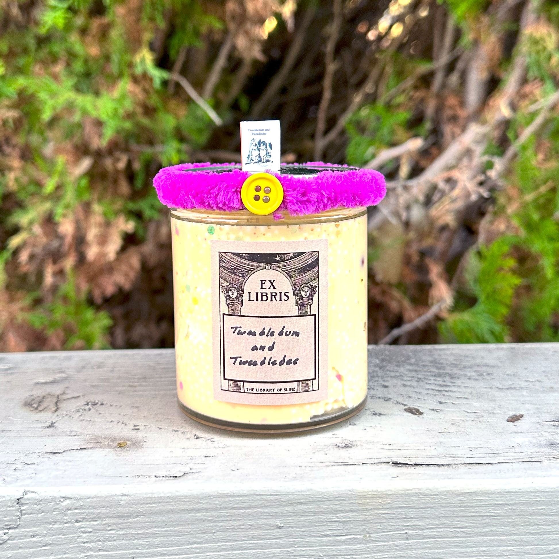 Contrariwise! Don't get mixed up in wordplay with the first floam slime from the Library of Slime - this slime has a thick and glossy base and small foam balls mixed with popping plastic grapes. Comes with Dum and Dee's hats and bowties.